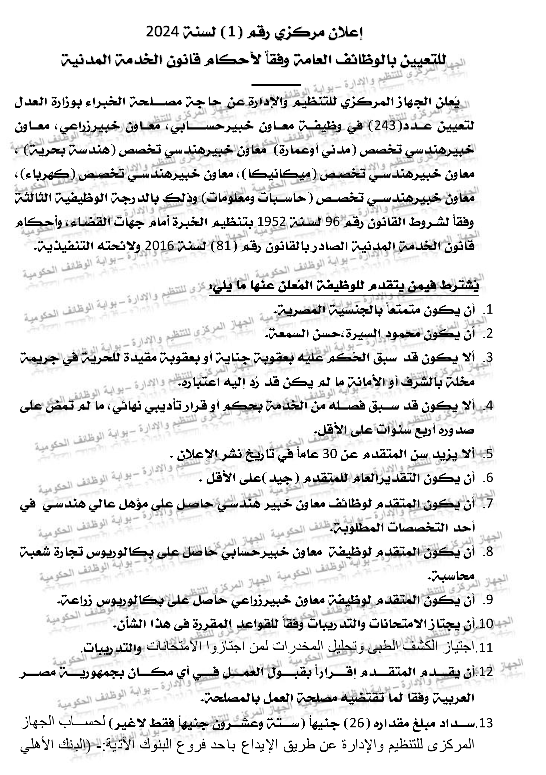 - معاون خبير هندسى (تخصص كهرباء) (تعيين)